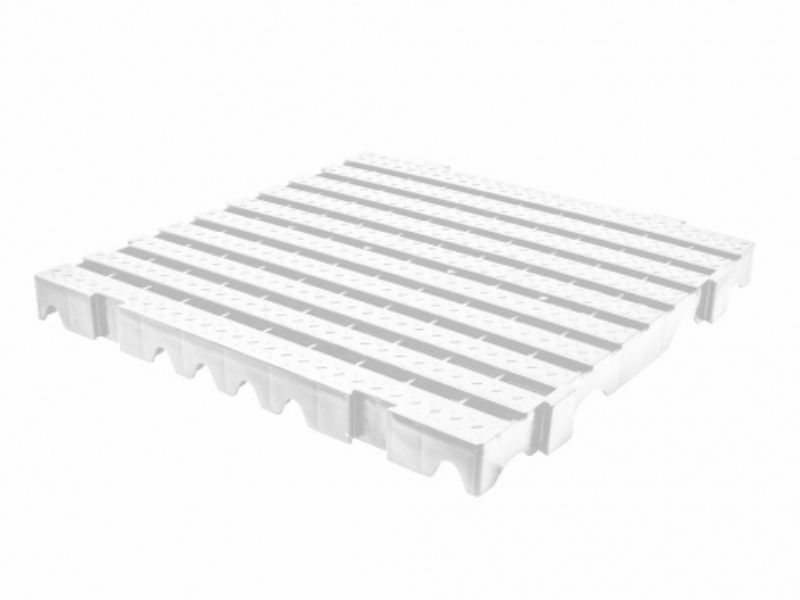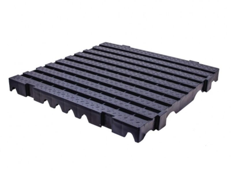 Estrado modular com encaixe macho / fêmea permitindo vários layouts de montagem, para revestimento de diversos ambientes visando isolar contato direto com o piso ou solo.